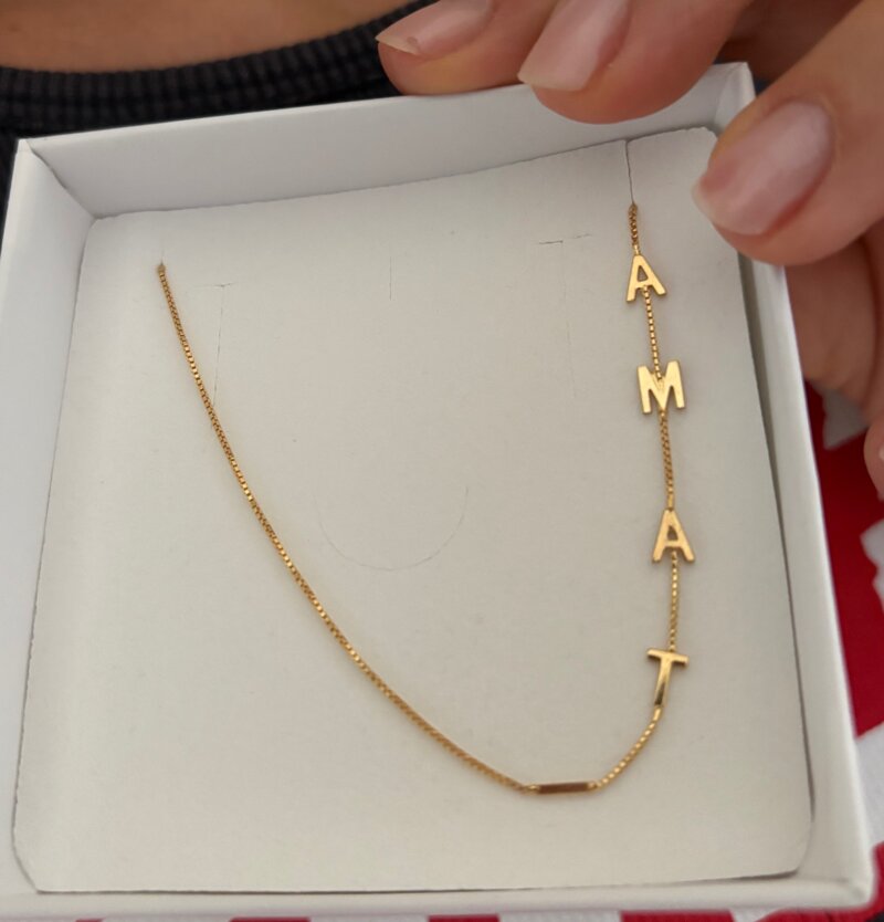 È il regalo perfetto (o l'auto-regalo ideale) perché unisce la qualità dei materiali a un design che non passa mai di moda. La disposizione laterale delle lettere è un tocco di stile moderno che si differenzia dalle solite collane con nome centrali.