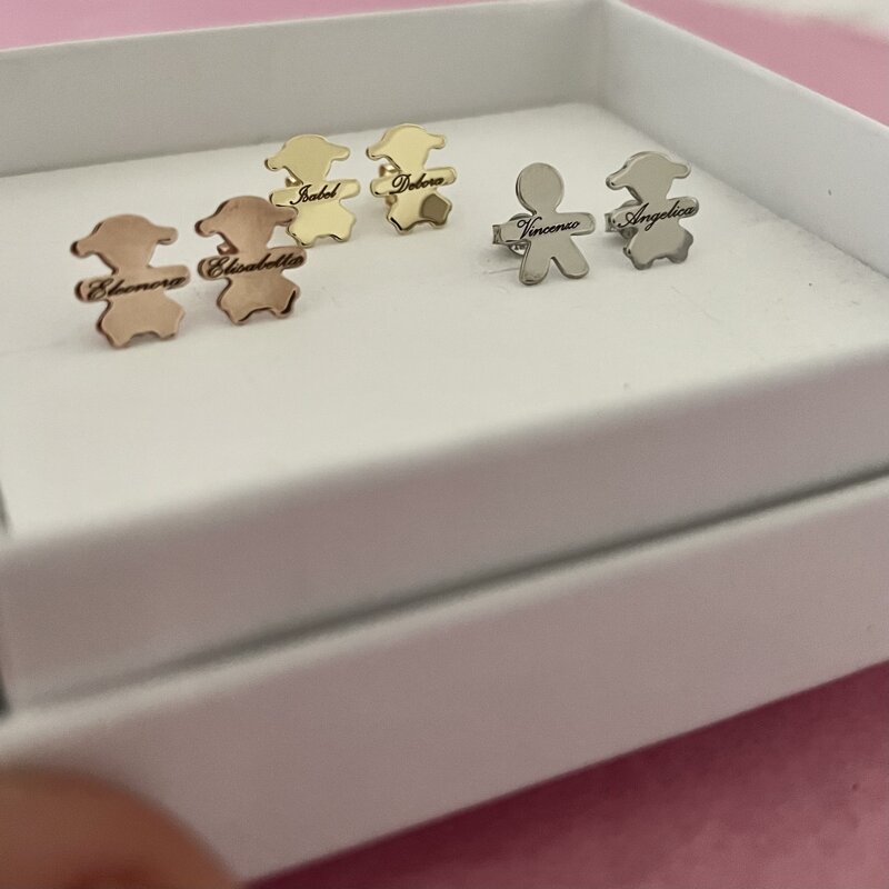 Porta sempre con te l'emozione più grande o fai un regalo che parla dritto al cuore. Il nostro Mono Orecchino a forma di Bebè è un gioiello tenero e unico, reso speciale dall'incisione del nome che sceglierai tu.